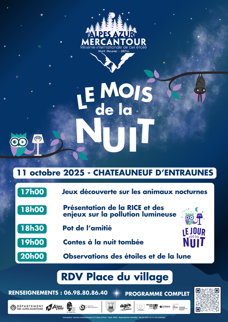 Nature et détente à Châteauneuf-d'EntraunesCette année, la RICE Alpes Azur Mercantour fête le Jour de la Nuit à Châteauneuf-d'Entraunes ! Rendez-vous au village pour une soirée exceptionnelle, à la découverte de la nuit, de ses mystères et de sa beauté.