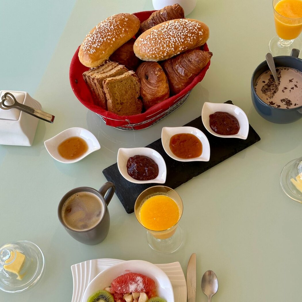 Au réveil, prenez le temps de savourer votre petit-déjeuner dans votre cocon, enveloppés de douceur et de complicité.